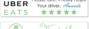 Uber Eats Delivery Driver Thank You Stickers with your custom driver name on them.